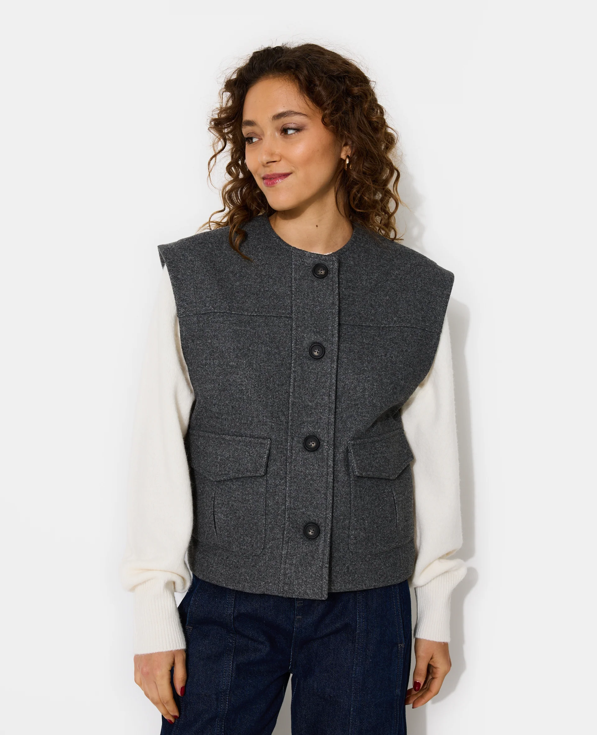 80% OFFDANS LE PANIERVeste sans manches effet drap de laine
