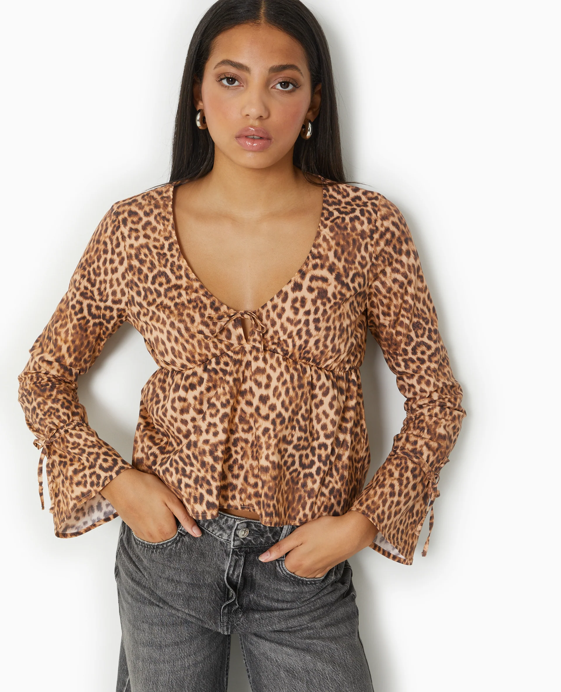 Blouse motif léopard avec manches flare