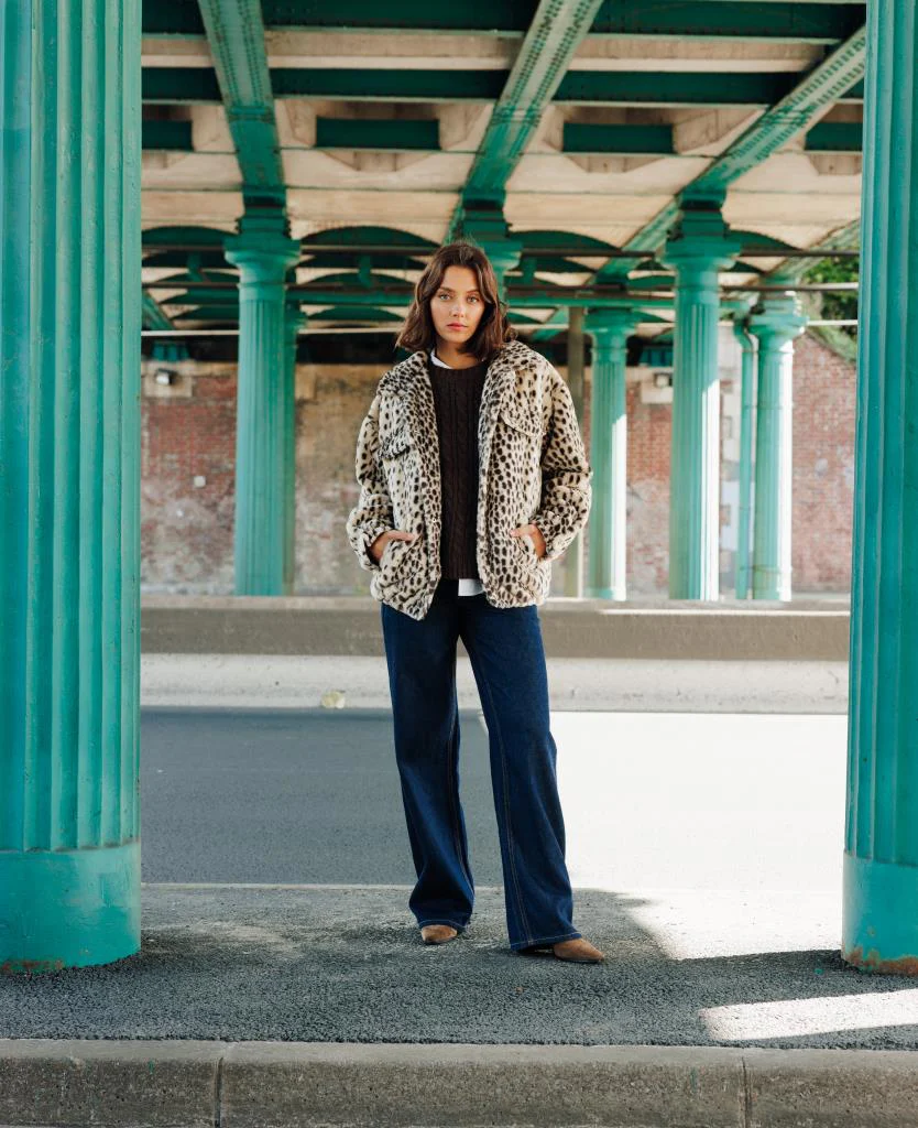 Blouson en fourrure esprit guépard avec col