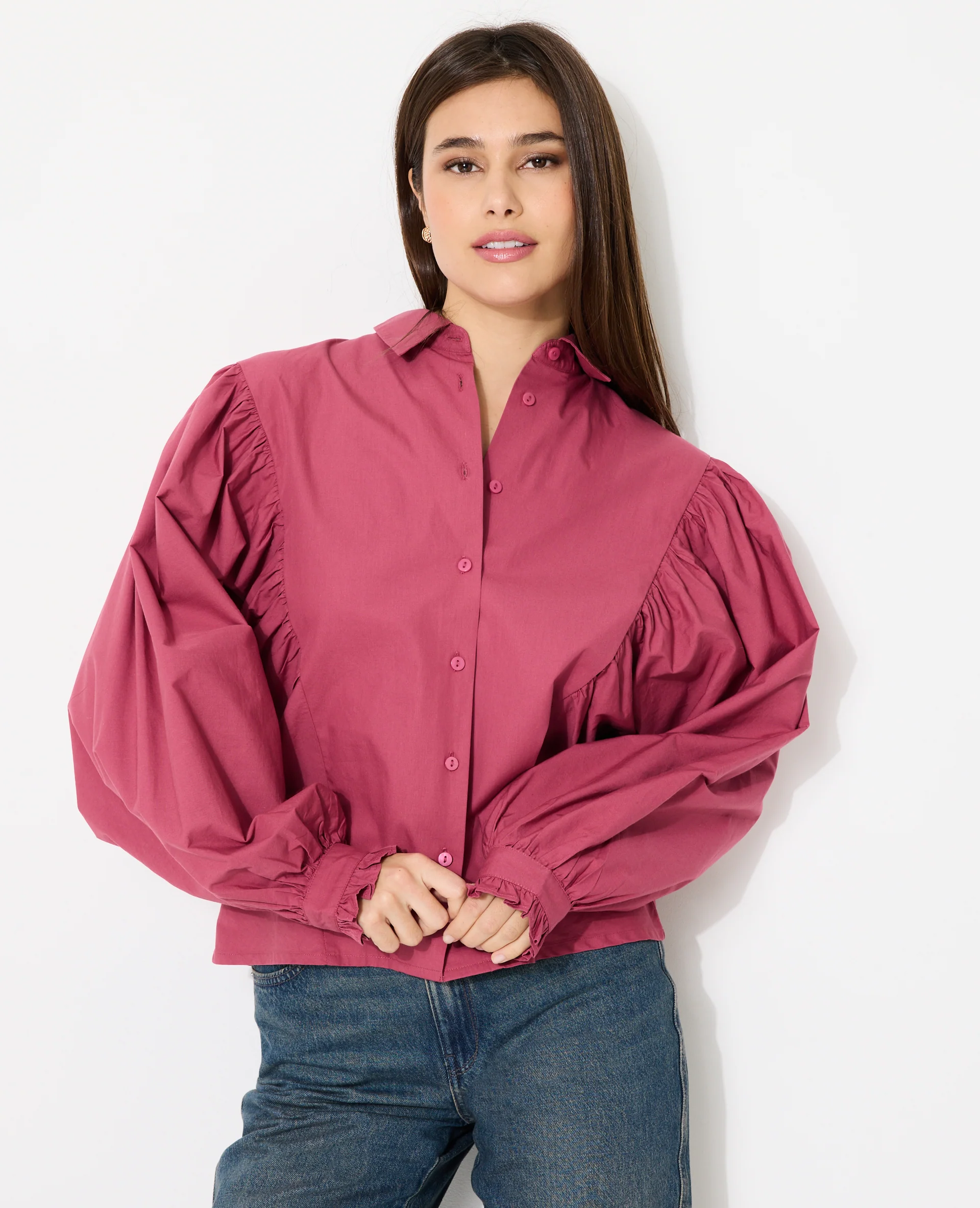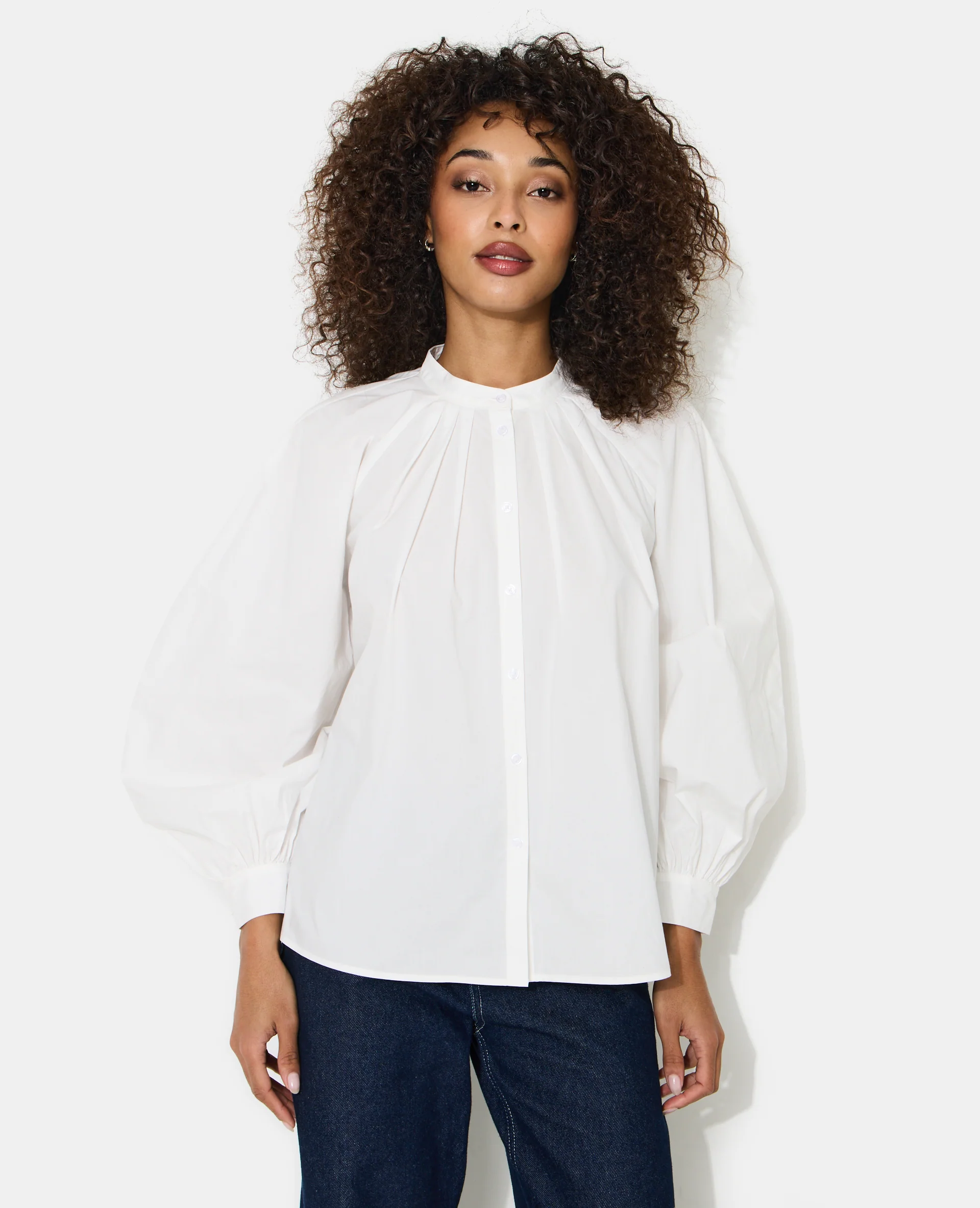 Blouse en popeline avec pinces et manches ballons