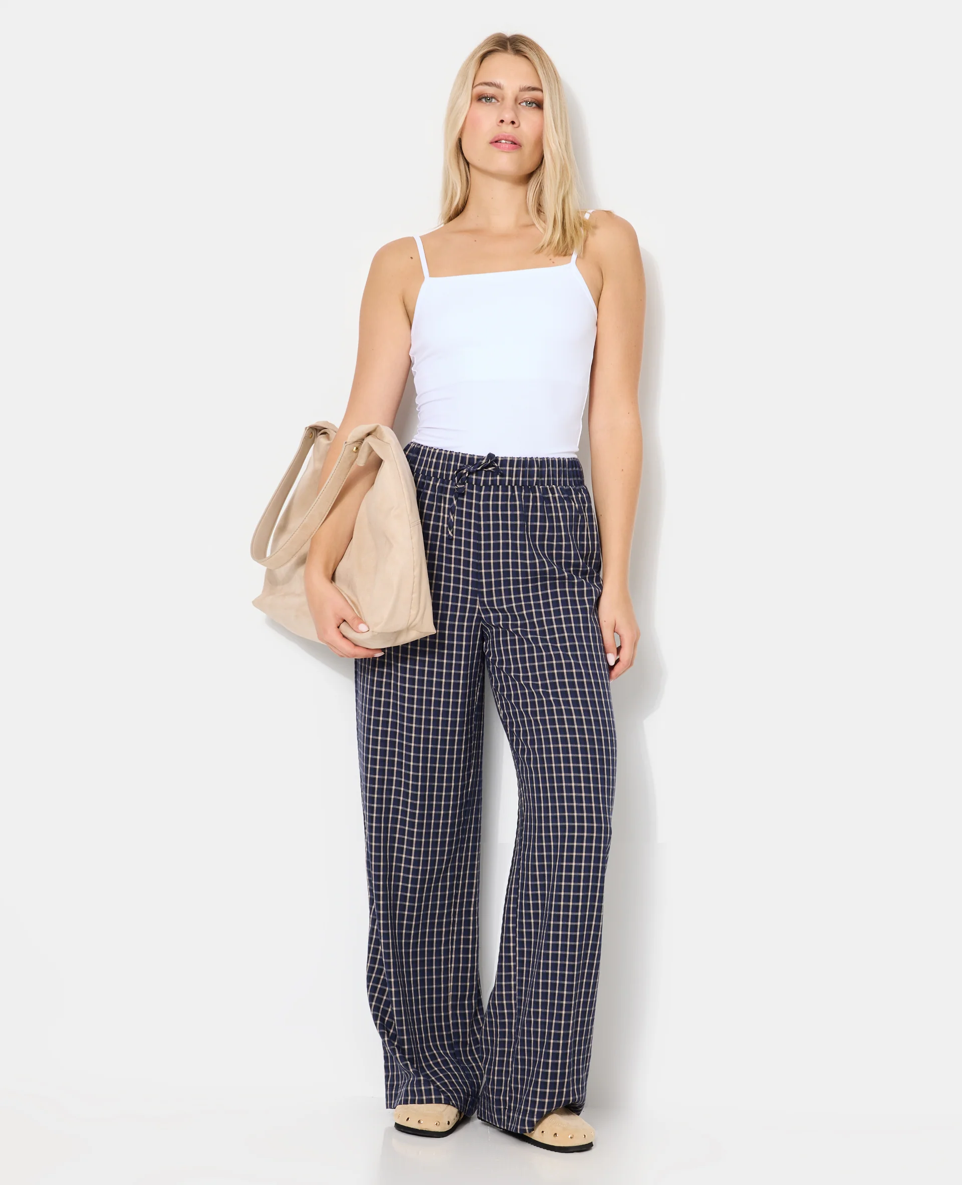 Pantalon large et droit à carreaux