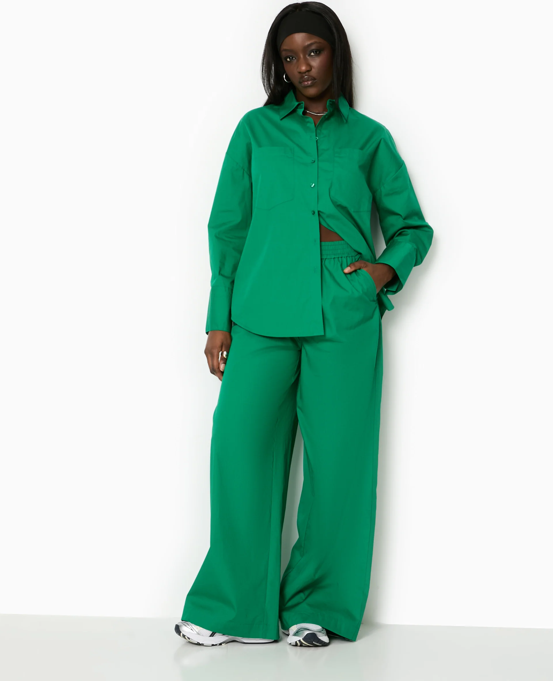 Pantalon large en popeline taille élastiquée