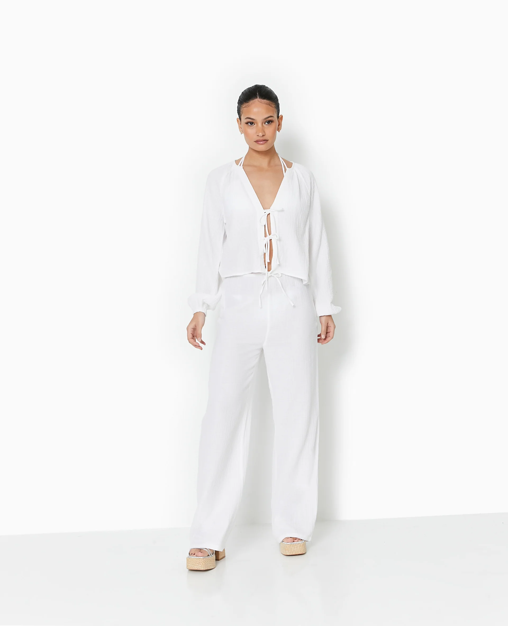 Pantalon large en gaze de coton