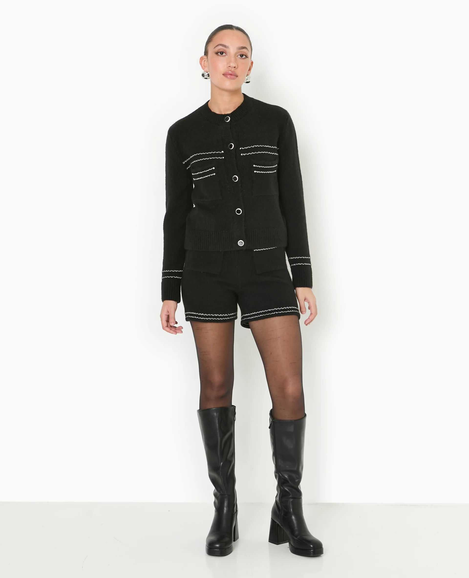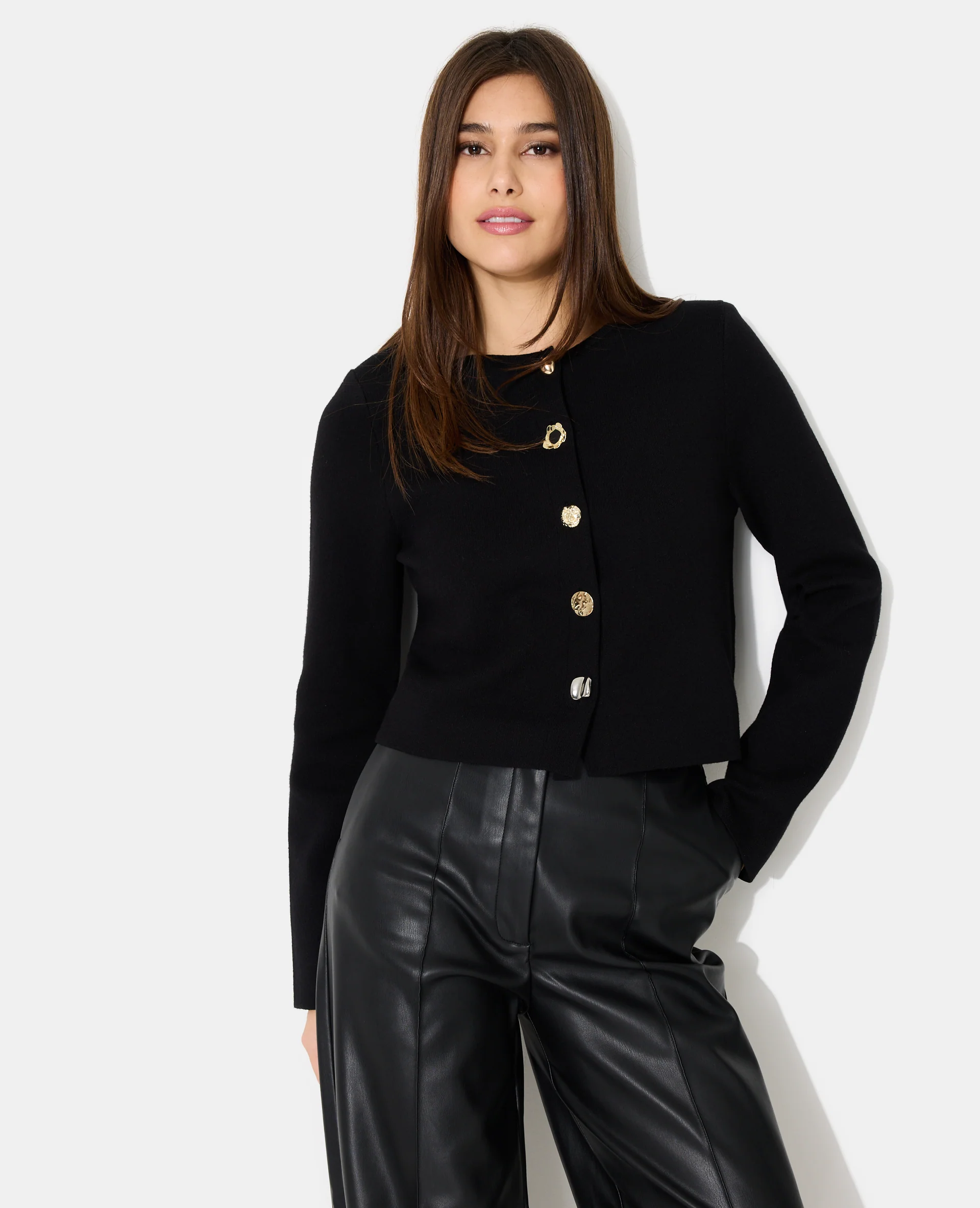 Gilet cardigan col rond avec boutons fantaisie