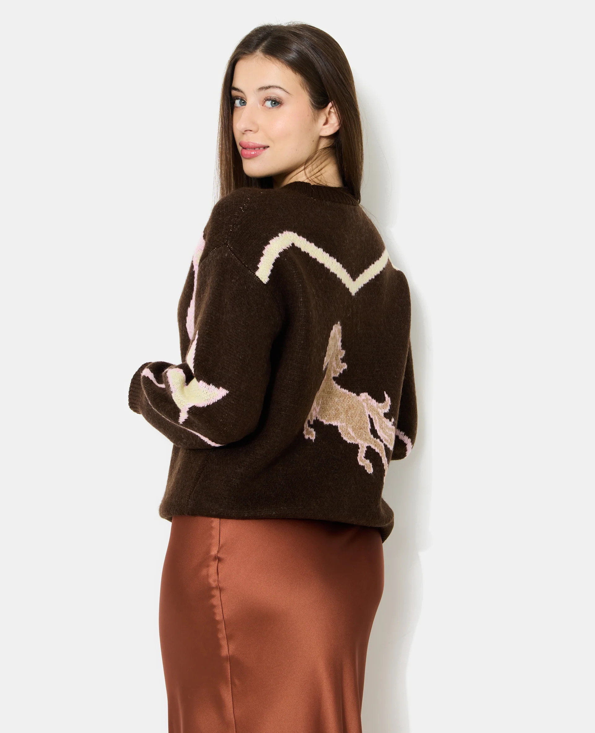 Pull col rond avec motifs fer à cheval, santiag, cheval